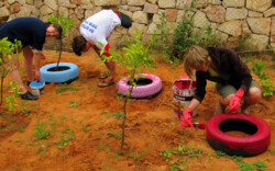 Deutsche Jugendliche helfen bei der Verschönerung eines Kindergartens in Katzir (Israel)